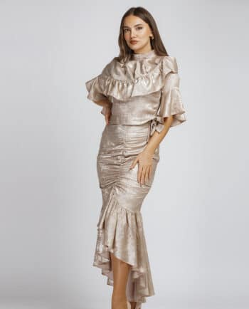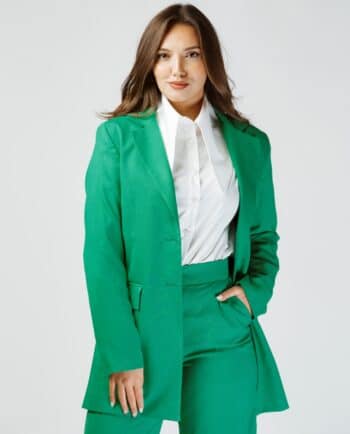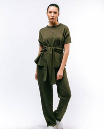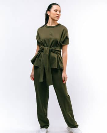 Kimano qollu, önü yarıq detaylı kofta və düz model şalvardan ibarət klassik kostyum. Parça: Yoluçnu. Maniken: Bədən 38, Boy 170 sm. Yuyulma qaydası: 30 dərəcədə tərs üzdən yuyulmalı və ütülənməli.
