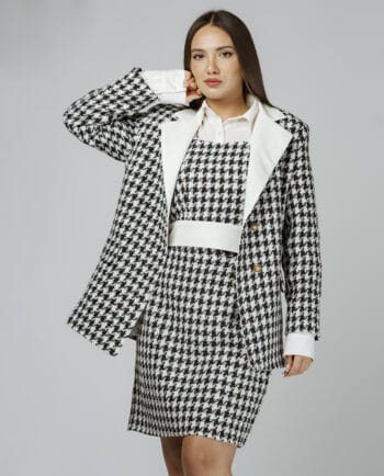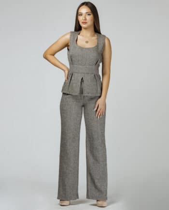 Önü düyməli köynək və yanları ip detaylı ətəkdən ibarət dəst. Material: İpək. Model: Bədən 36, Boy 165sm. Yuyulma qaydası: 30 dərəcədə tərs üzdən yuyulmalı və ütülənməli.