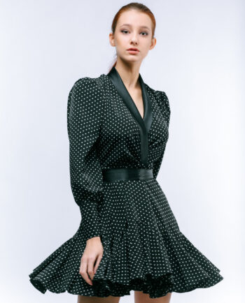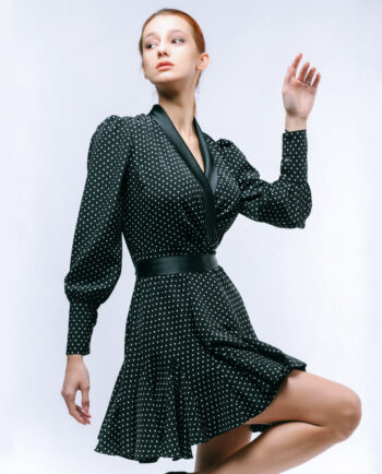 Tək qollu, yandan ipli büzməli, uzun libas. Parça: Krep. Maniken: Bədən 38, Boy 170 sm. Yuyulma qaydası: 30 dərəcədə tərs üzdən yuyulmalı və ütülənməli.